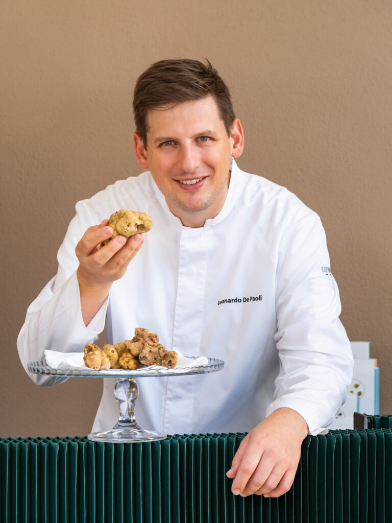 Alt text: “Chef Leonardo De Paoli holding truffles at OiO Luxembourg.”