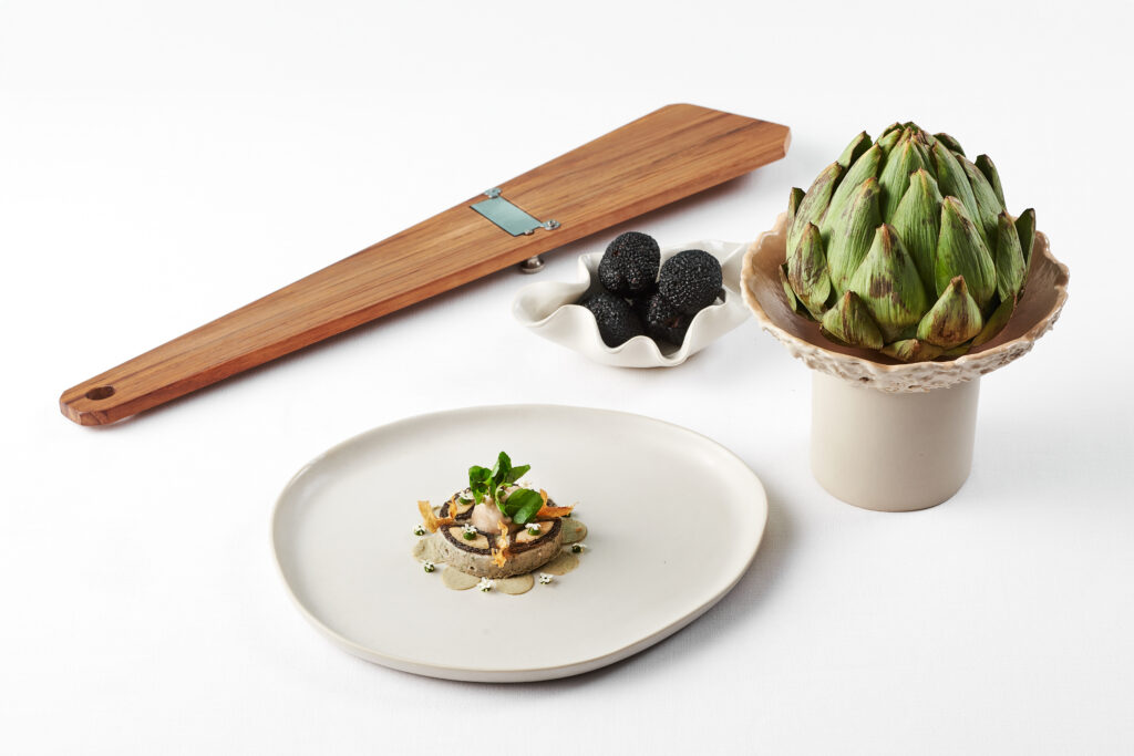 Another highlight from the seasonal menu is the artichoke with black truffle. Presented with elegance, the dish harmonizes the earthy richness of truffle with the natural sweetness of artichoke. Every element on the plate is thoughtfully composed, surrounded by raw ingredients that highlight the inspiration behind the dish.